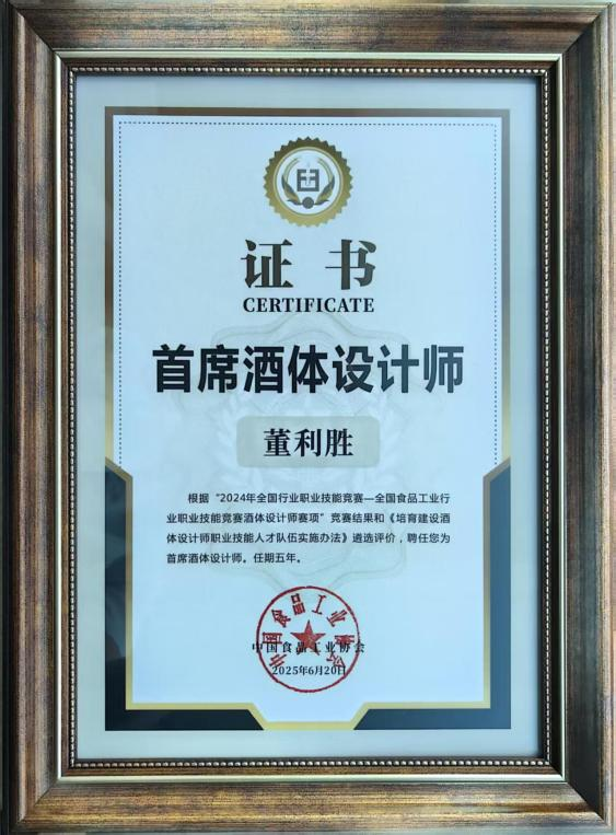 “首席酒體設(shè)計(jì)師” 作為白酒產(chǎn)業(yè)鏈的 “靈魂工程師”,主導(dǎo)酒體研發(fā)、品質(zhì)把控與風(fēng)格定型,其專(zhuān)業(yè)能力在消費(fèi)升級(jí)下成為產(chǎn)品市場(chǎng)競(jìng)爭(zhēng)力的核心引擎。中國(guó)食品工業(yè)協(xié)會(huì)白酒評(píng)選權(quán)威嚴(yán)苛,每年經(jīng)多輪評(píng)審頒發(fā)重磅獎(jiǎng)項(xiàng)。董利勝獲評(píng)“首席酒體設(shè)計(jì)師”,彰顯其個(gè)人實(shí)力與泰山酒業(yè)技術(shù)領(lǐng)先優(yōu)勢(shì)。